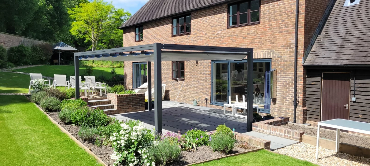 - Bespoke metal structured gazebo with retracting canopy