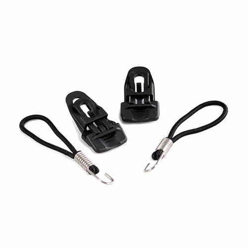 - Includes 2 black midi clips and 2 8″ black bungee cords