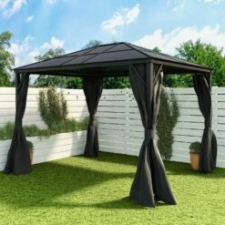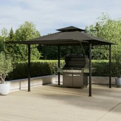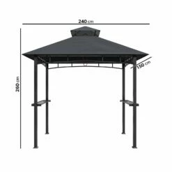 Fortrose 3x3m Black Metal BBQ Shelter Gazebo With Grey Canopy Roof And Retractable Side