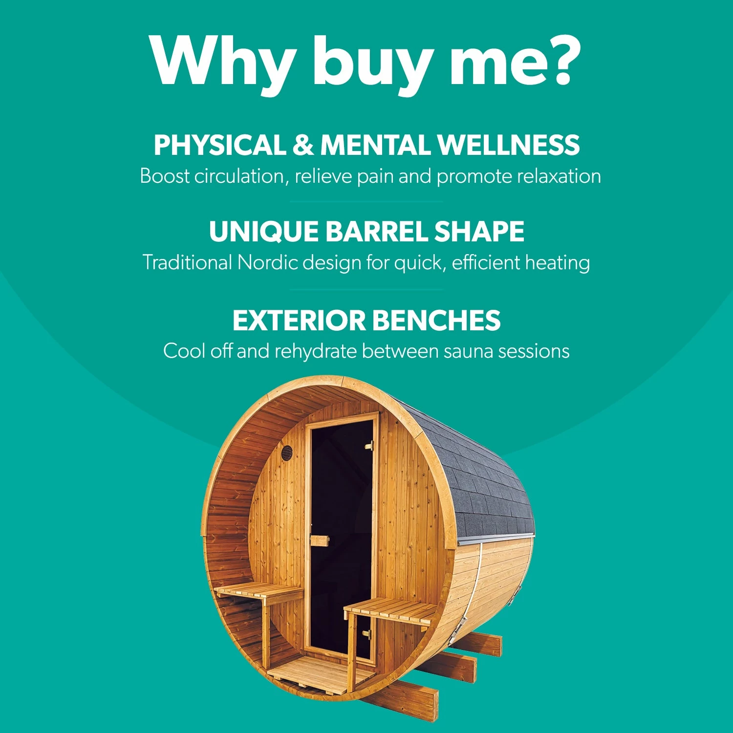 - 4 person barrel sauna for your own private spa sanctuary in your garden