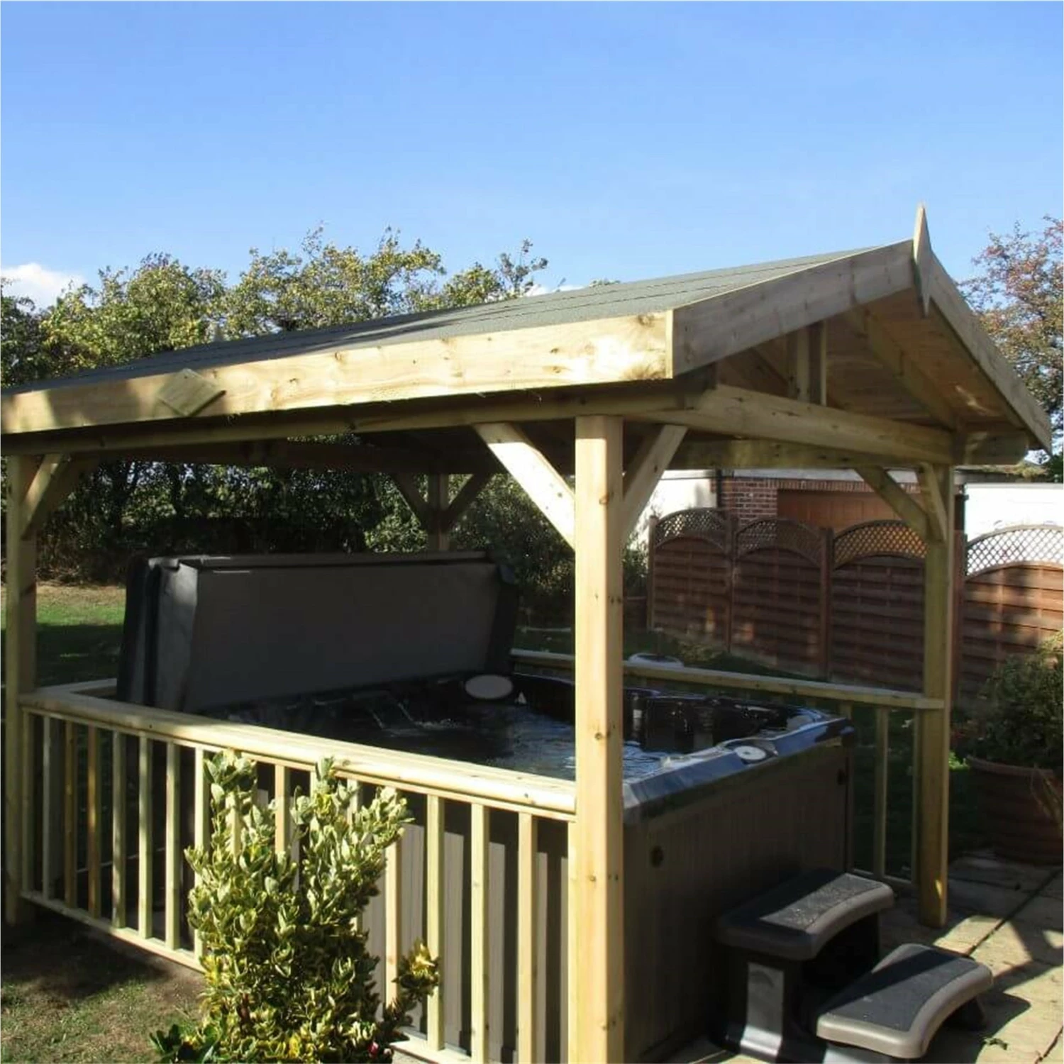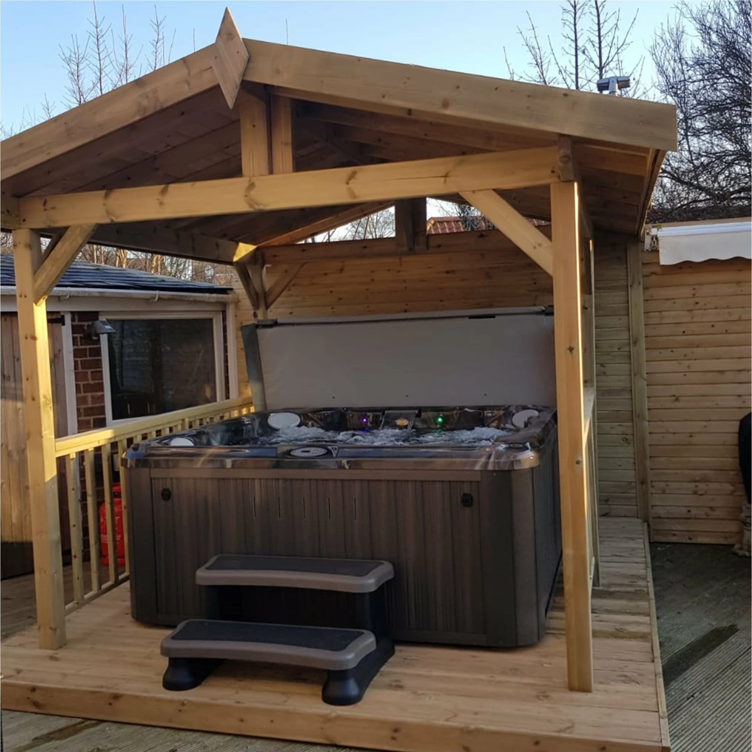 Wooden gazebos are an ideal choice for a hot tub shelter. They blend in seamlessly into your garden and allow for an open feel while protecting from the elements. Gazebos will enhance your relaxation experience in your own hot tub haven!