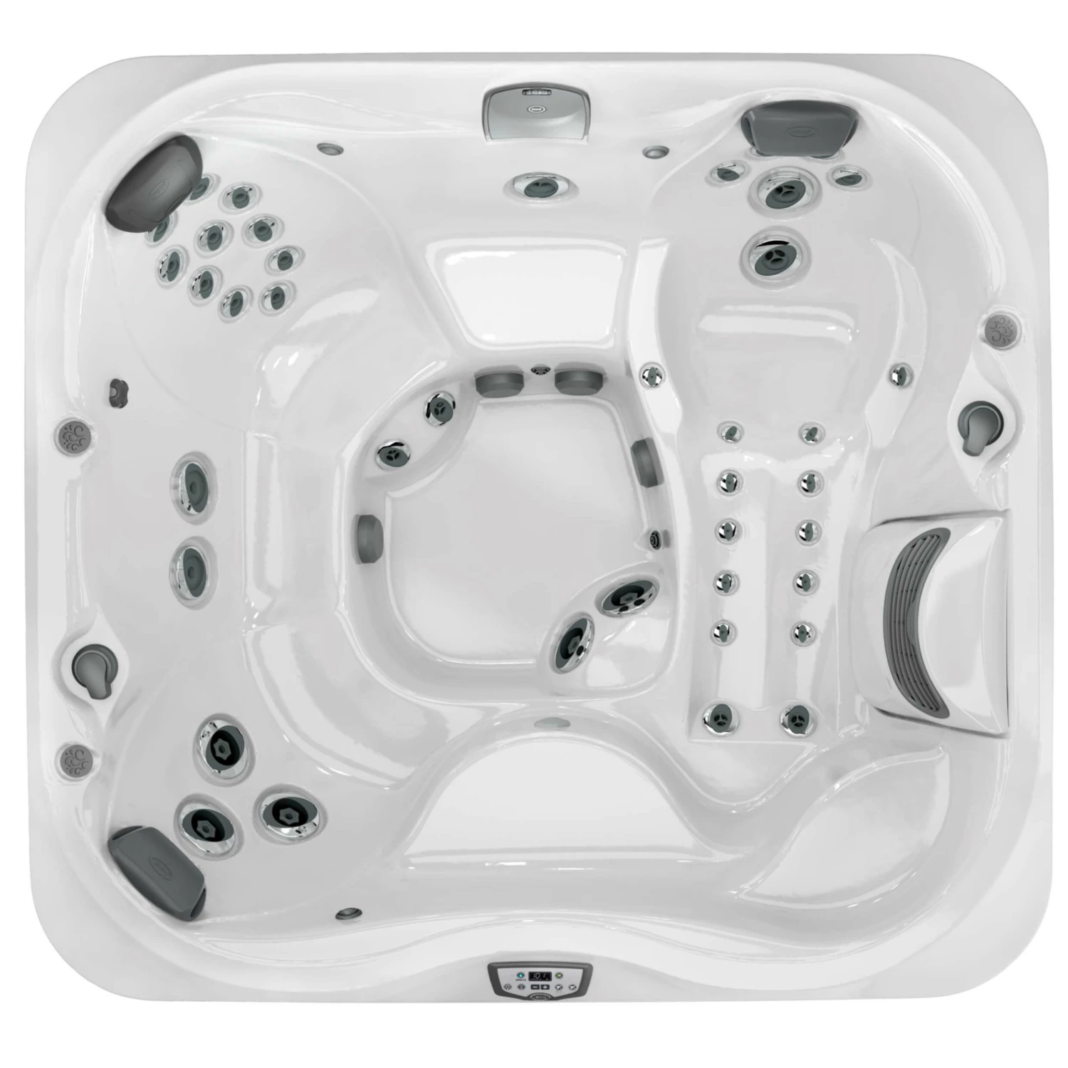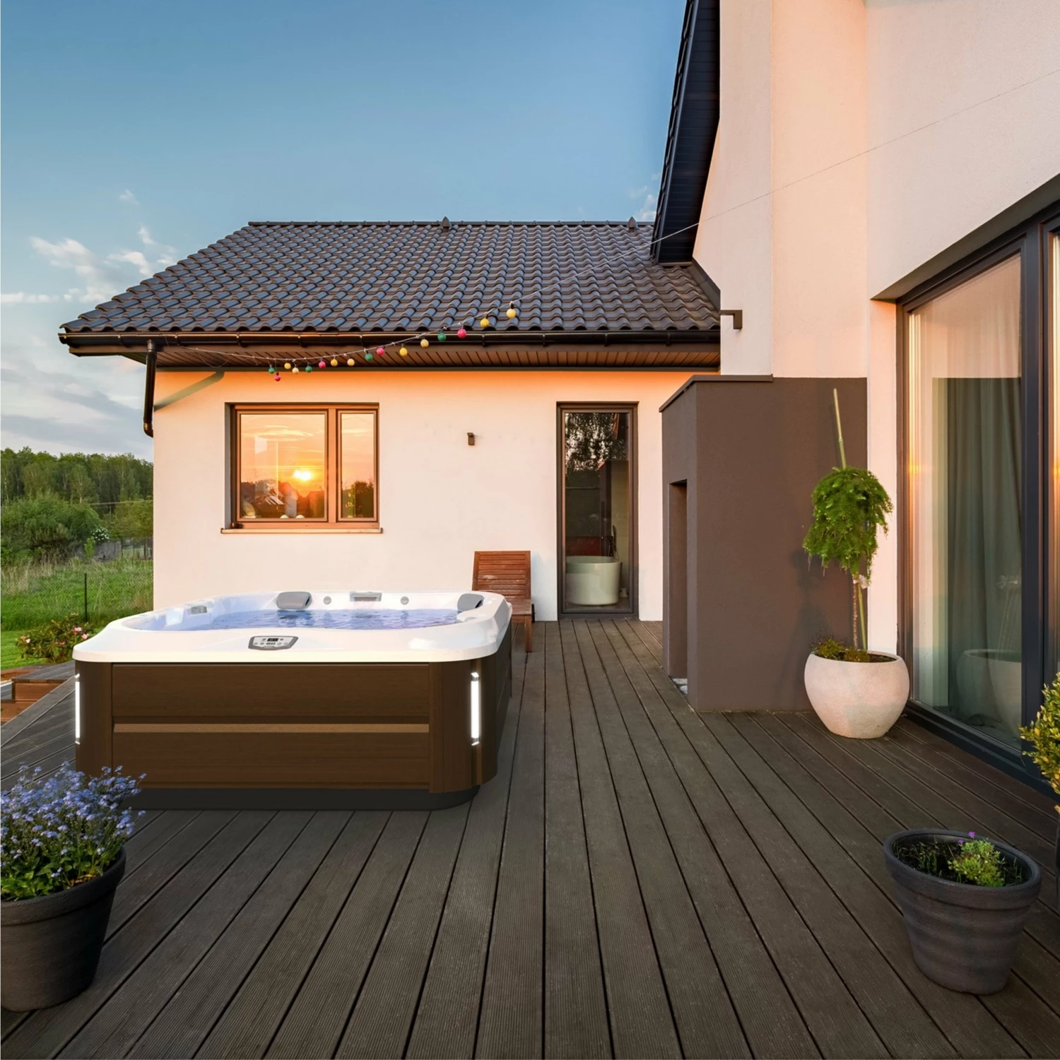 The Jacuzzi® J300 range puts comfort at the forefront, bringing a new dimension of functionality and design. The J355IP™ is a mid-sized hot tub, the only one in the range to offer two low-high seats, making it perfect for families with younger children. It comes complete with cool-down seating and neck-to-toe hydrotherapy jets.
