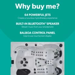 The J365IP™ is compatible with the SmartTub™ system, allowing you to control the hot tub from your phone. The ClearRay® system harnesses UV-C light to remove 99.9% of waterborne pathogens, working alongside the 4-stage filtration system to give you the safest and purest water experience. Environmentally friendly SmartSeal™ insulation achieves up to a 20% reduction in energy use, while protecting from moisture and reducing noise.