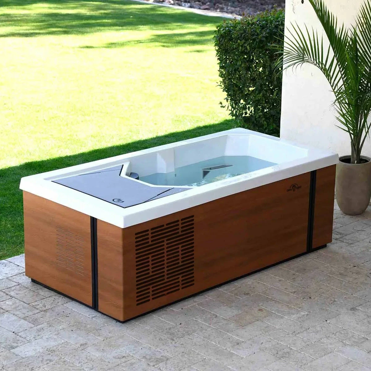 Our Alpine ice tub, crafted by the award-winning Master Spas®, makes it easier to get comfortable in the cold. Enjoy a spacious, deep tub for a fully immersive dip, along with non-slip flooring and armrests. This state-of-the-art ice bath comes with wifi connection for smart control at your fingertips, along with a built-in chiller, insulated cover, and premium filtration system, giving you crystal clear cold water and minimised energy costs. Embrace the cold, channel your inner Olympic champion, and transform your garden into an at-home sanctuary to enhance recovery, reduce inflammation and break through mental barriers.