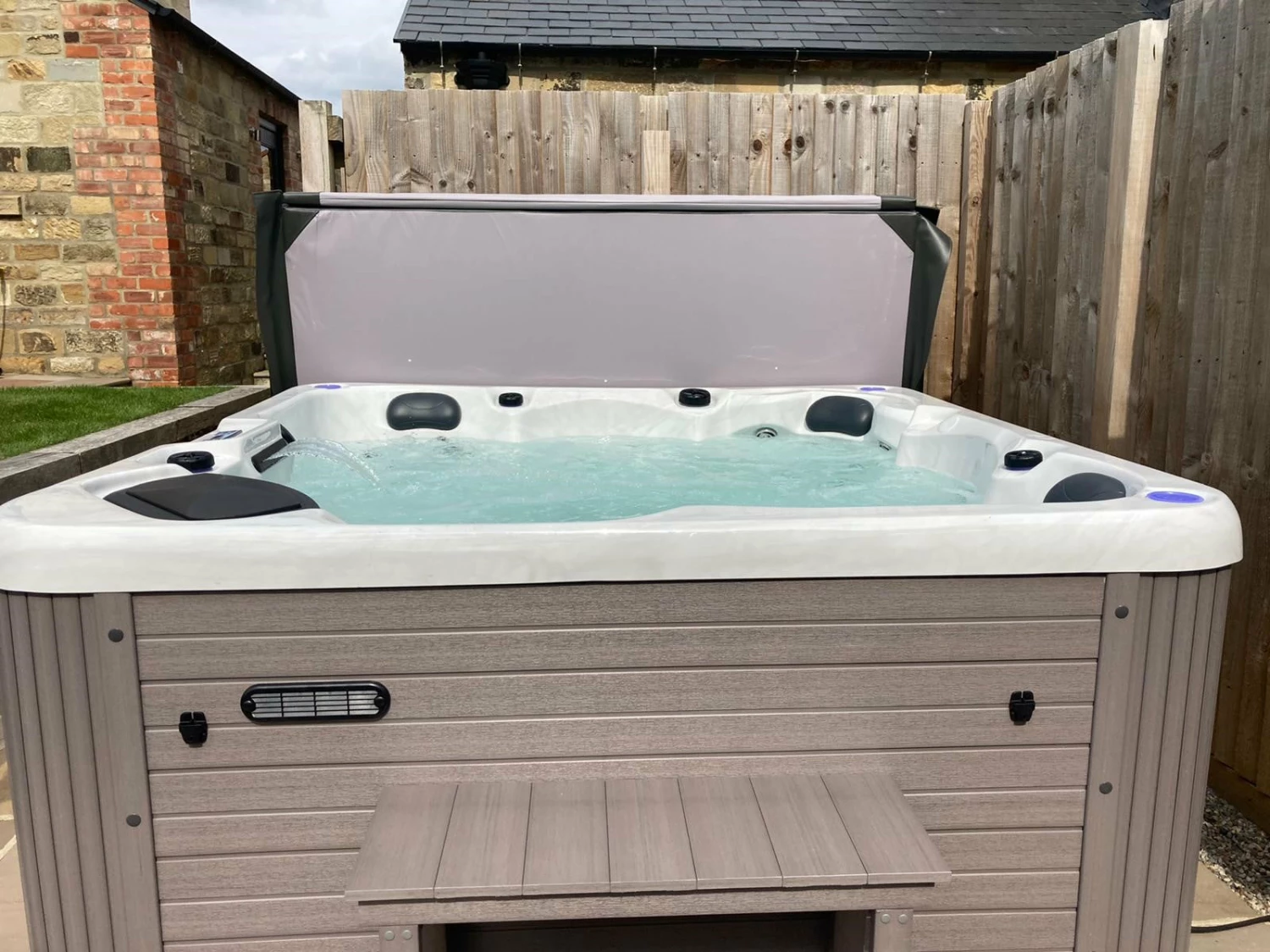 Having a hot tub which suits your outdoor surroundings is just as important as the experience. This hot tub is eye-catching, from its tongue and groove panelled wood effect cabinet to its glossy faux marble shell, which glistens in 2-tone greys. Its stand-out features like the multi-coloured LED lighting effects inside, a built-in Bluetooth music system, plus a water purification system with a 2-stage skimmer filtration make it a worthy investment.