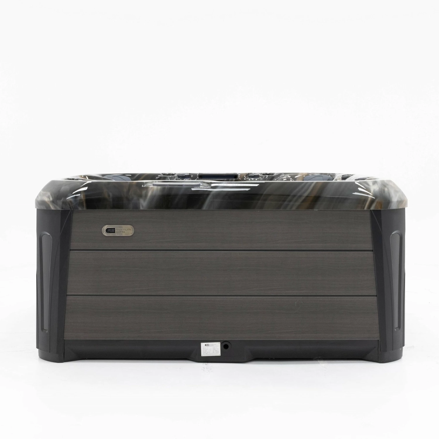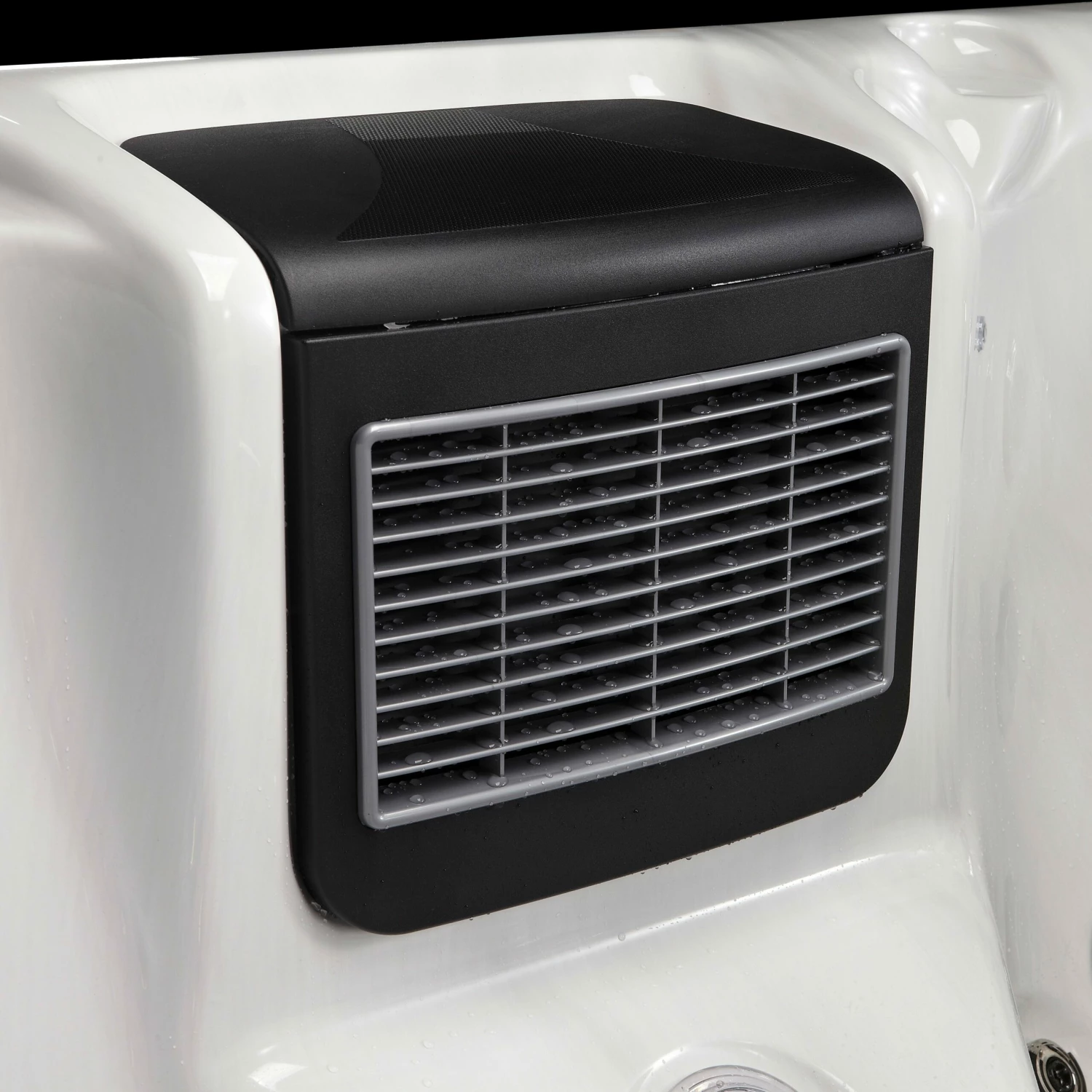 This hot tub is luxurious, from its low maintenance cabinetry and glossy faux marble shell to features like the mood-lifting LED lights positioned underwater, water level and on the corner panels, the Bluetooth sound system that’s perfect for hosting when guests are over and the lockable cover that retains heat and saves energy. The ozone water filter system gives you extra clean and clear water to keep it looking good.