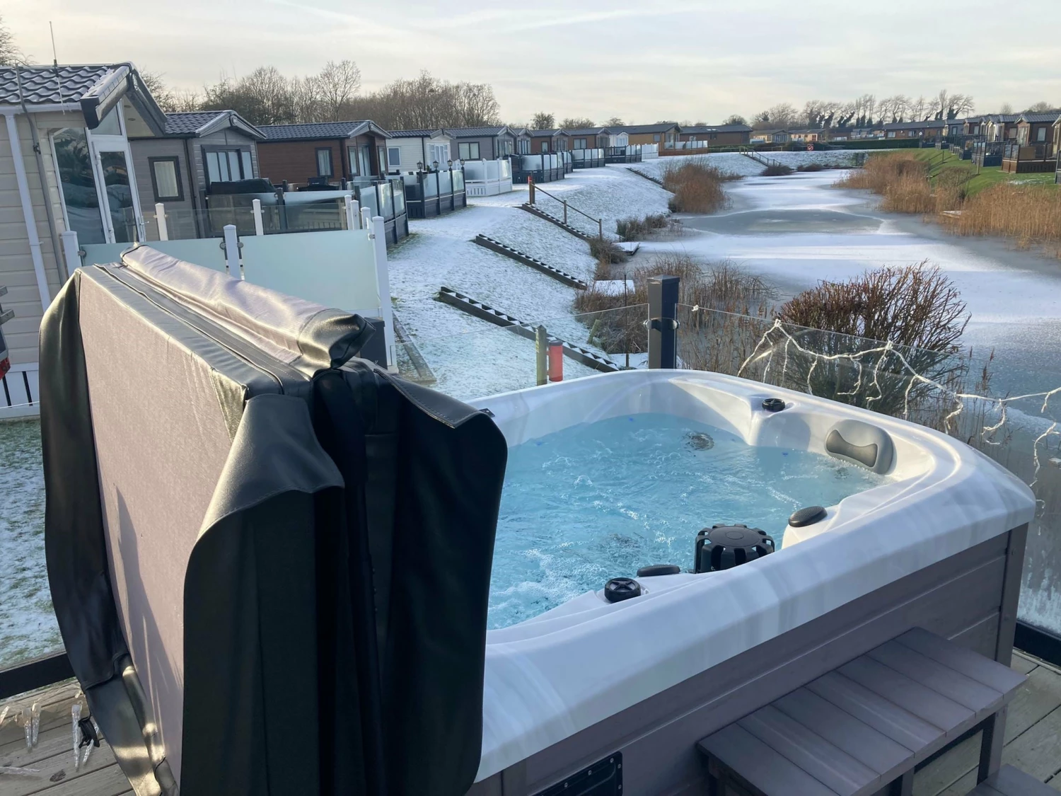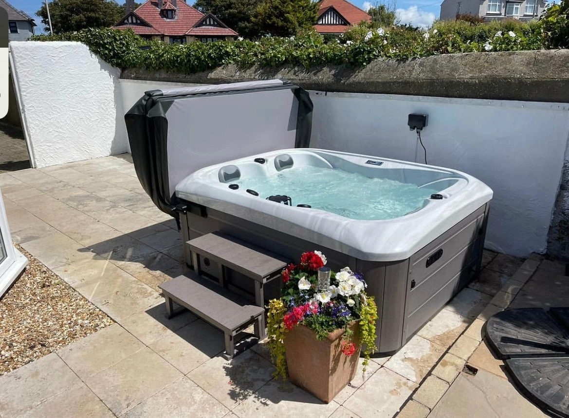 - Intimate 3-seater hot tub with integrated lounger