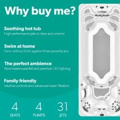 A swim spa combines all the hydrotherapy, wellness and relaxation benefits of a hot tub, with the added luxury of a swimming pool – all at a fraction of the cost of a pool.