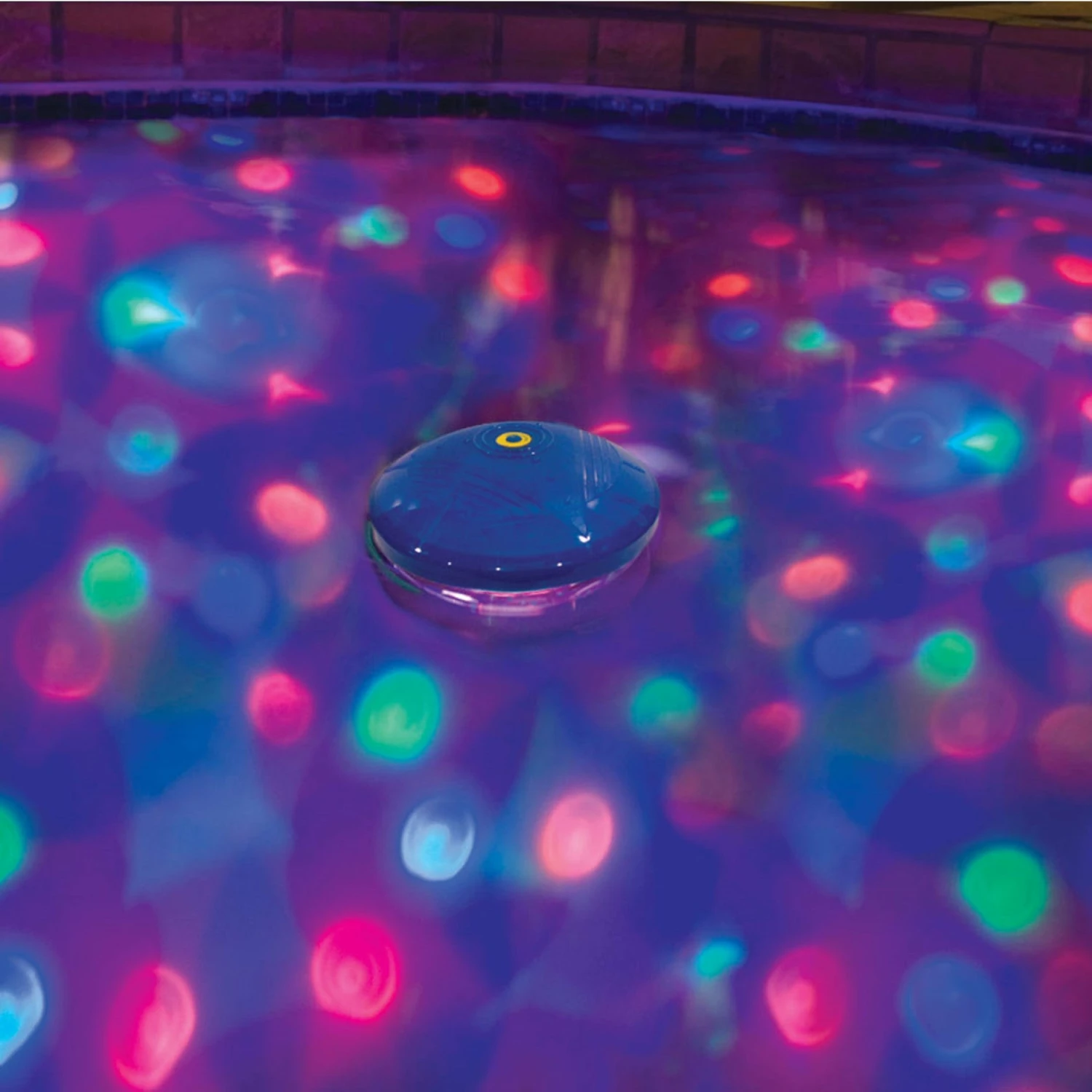 Our Underwater Light Show will add the finishing touch to your hot tub or pool party! As it floats it projects an array of light patterns onto the bottom and sides of your spa, creating a stunning rainbow display. With seven different light shows to choose from, you can tailor to your mood.